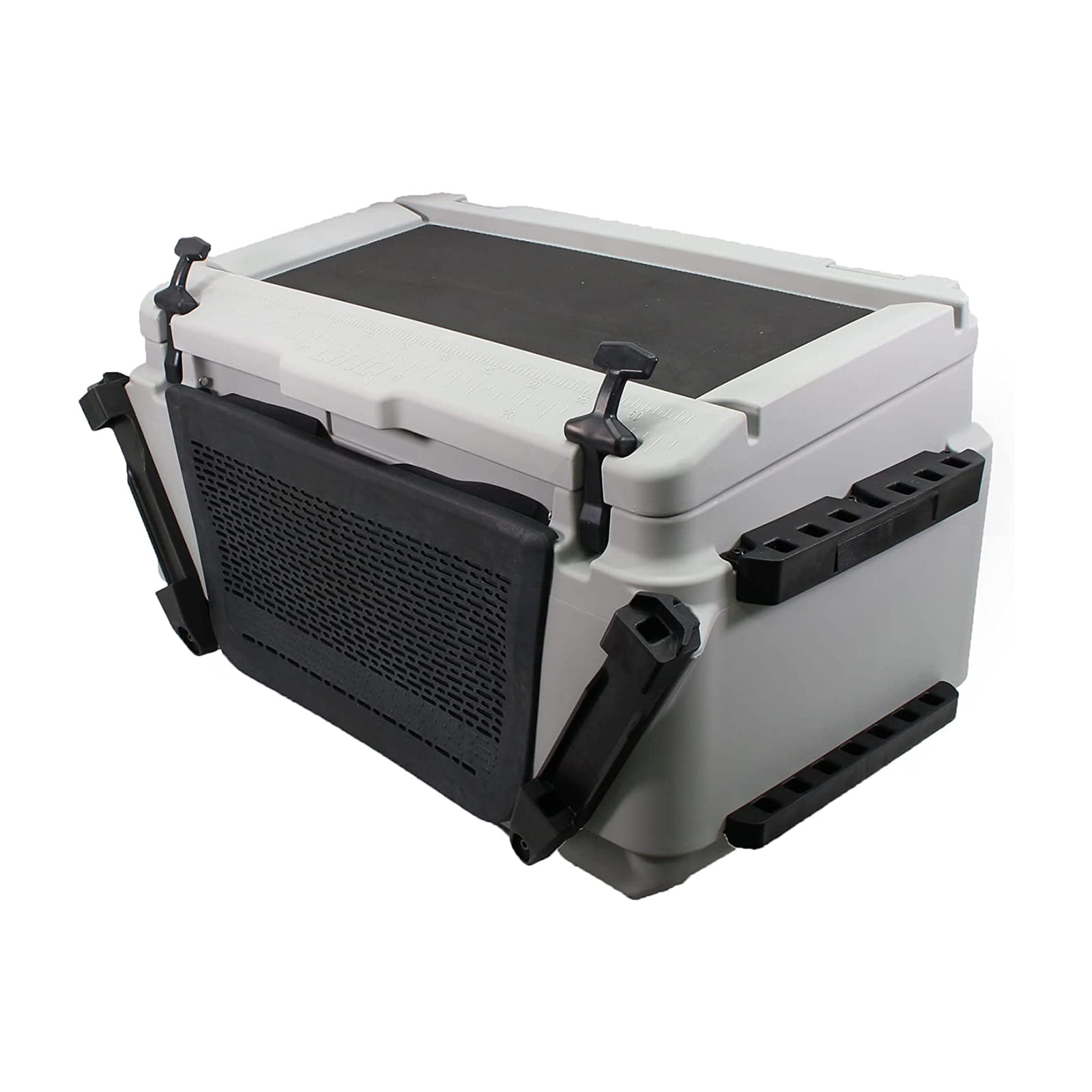 • W górnej części znajduje się zagłębiona powierzchnia robocza z antypoślizgową powierzchnią, idealna do mocowania haczyków, a także wbudowana miarka do szybkiego pomiaru ryb
