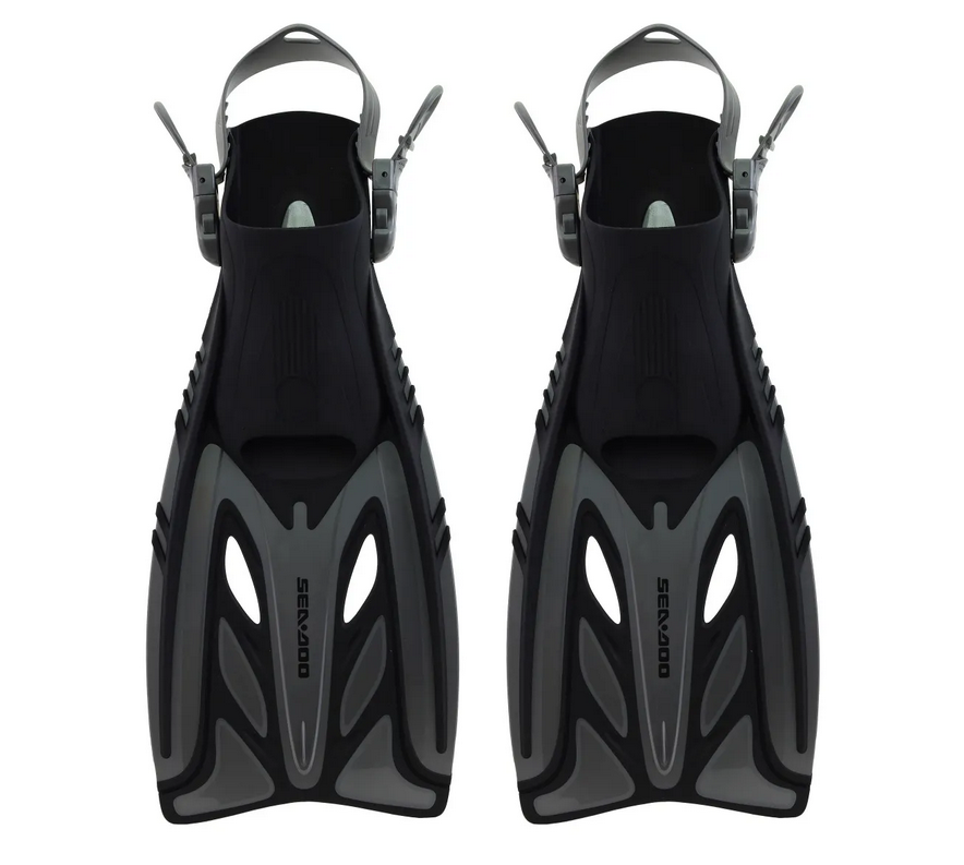 Uniwersalny zestaw dla dorosłych na odkrywanie głębin! Maska, rurka i płetwy Sea-Doo w komplecie z siatkową torbą transportową. Idealny do nurkowania powierzchniowego z Sea-Doo.